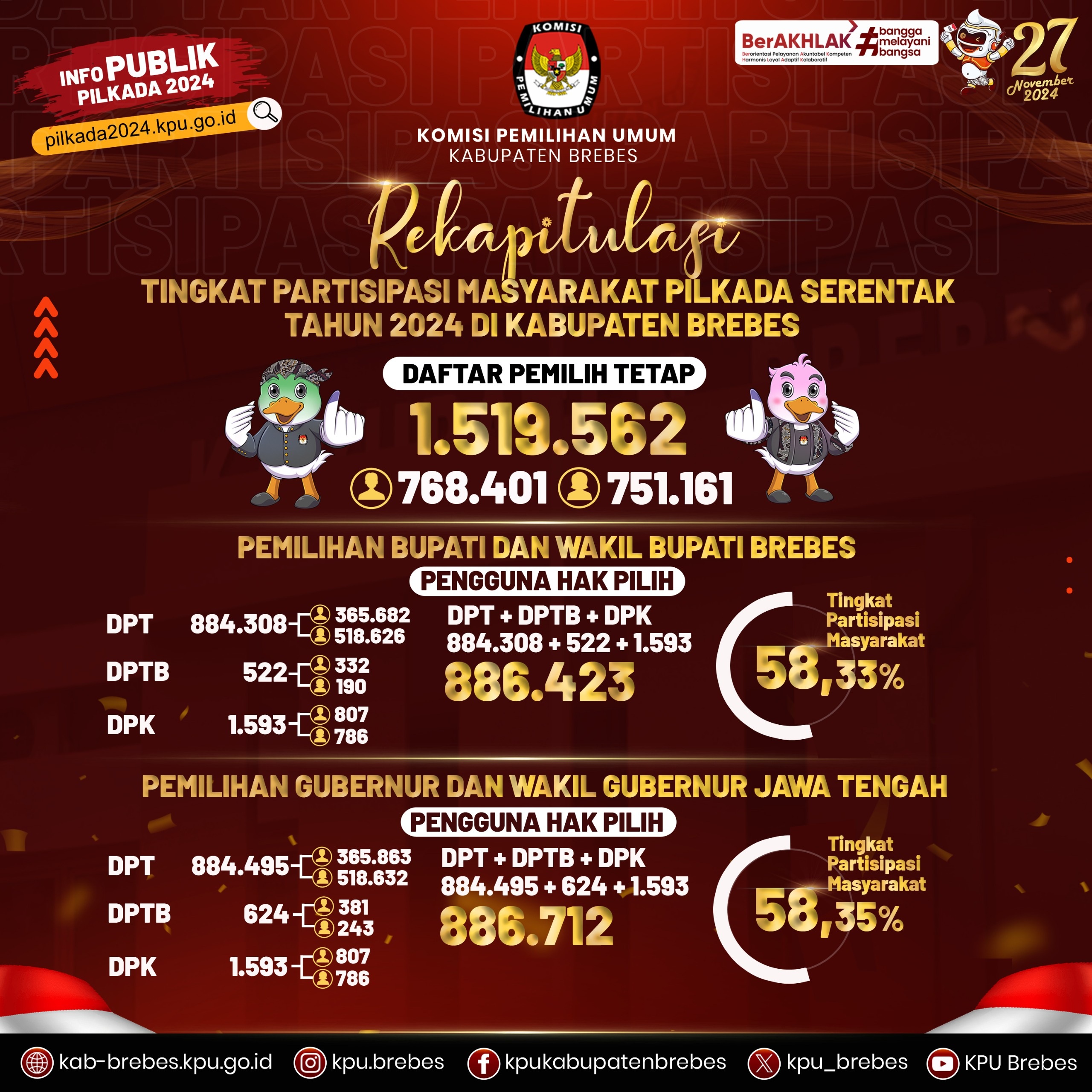 INFO GRAFIS REKAPITULASI TINGKAT PARTISIPASI MASYARAKAT PILKADA SERENTAK TAHUN 2024 DI KABUPATEN BREBES