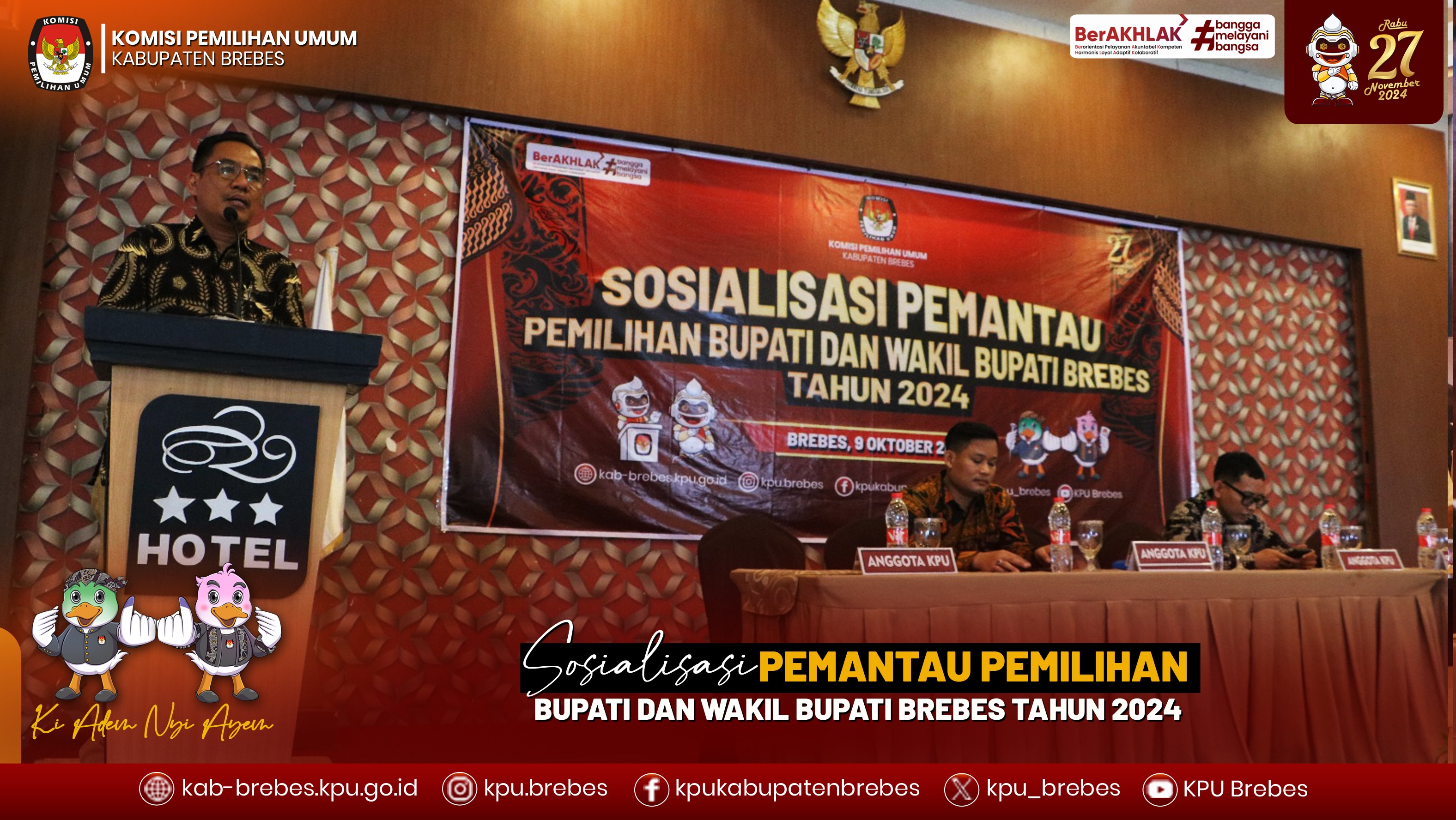 #Temanpemilih Komisi Pemilihan Umum Kabupaten Brebes mengikuti kegiatan Rapat Koordinasi Kehumasan Pilkada Serentak tahun 2024 di Hotel Patra, Semarang.