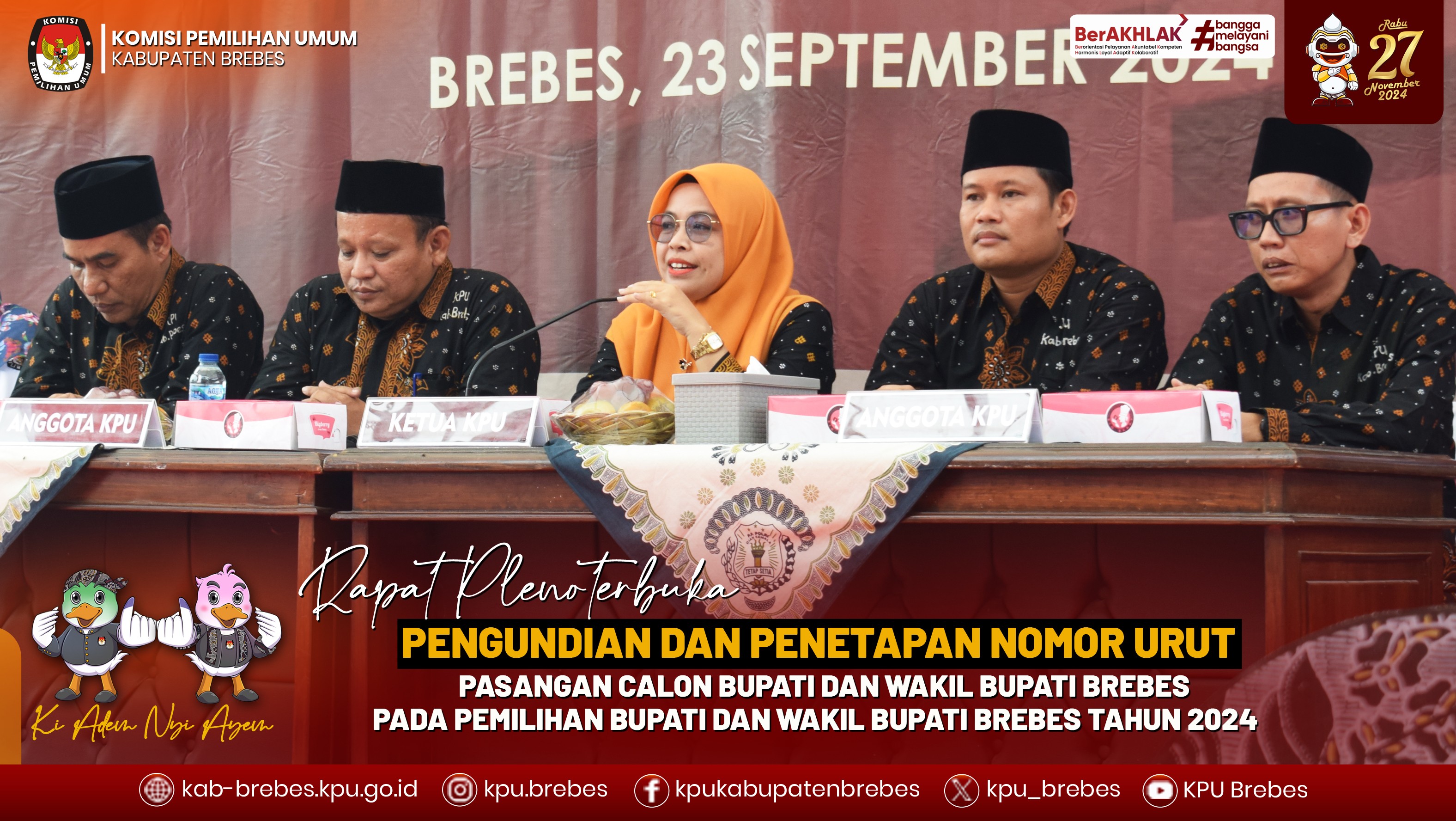 RAPAT PLENO TERBUKA PENETAPAN NOMOR URUT PASANGAN CALON PESERTA PEMILIHAN BUPATI DAN WAKIL BUPATI BREBES TAHUN 2024 Senin, 23 September 2024 19:00 106 #Temanpemilih KPU Kabupaten Brebes melaksanakan kegiatan Rapat Pleno Terbuka Penetapan Nomor urut Pasangan Calon Peserta Pemilihan Bupati dan Wakil Bupati Brebes Tahun 2024 #KPUmelayani #pilkadaserentak2024 #pilbupbrebes2024 Baca Selengkapnya