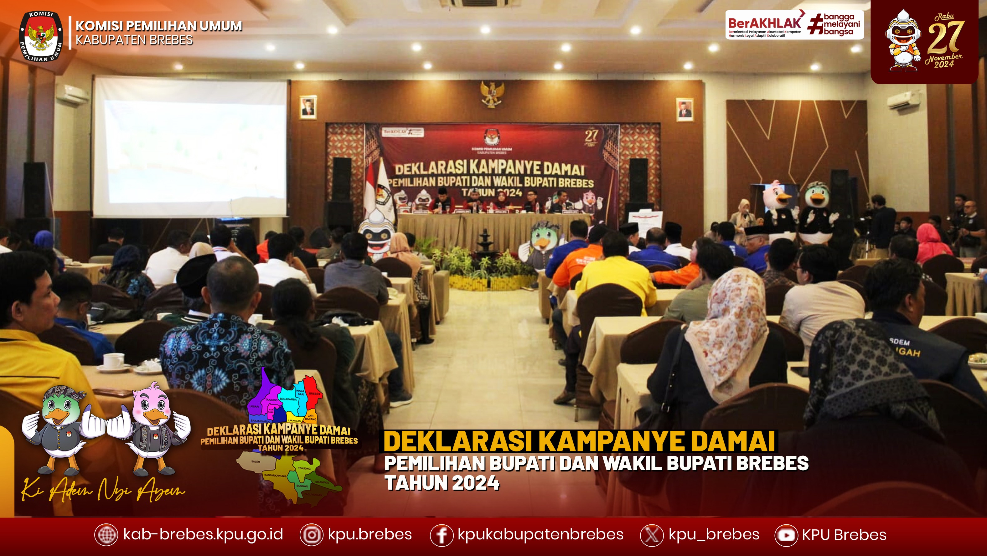 DEKLARASI KAMPANYE DAMAI PEMILIHAN BUPATI DAN WAKIL BUPATI BREBES TAHUN 2024 Selasa, 24 September 2024 20:00 127 #Temanpemillih KPU Kabupaten Brebes melaksanakan kegiatan Deklarasi Kampanye Damai Pemilihan Bupati dan Wakil Bupati Brebes Tahun 2024, di Almayra Convention Hall Grand Dian Hotel Brebes, Selasa (24/9) #kpumelayani #pilkadaserentak2024 Baca Selengkapnya