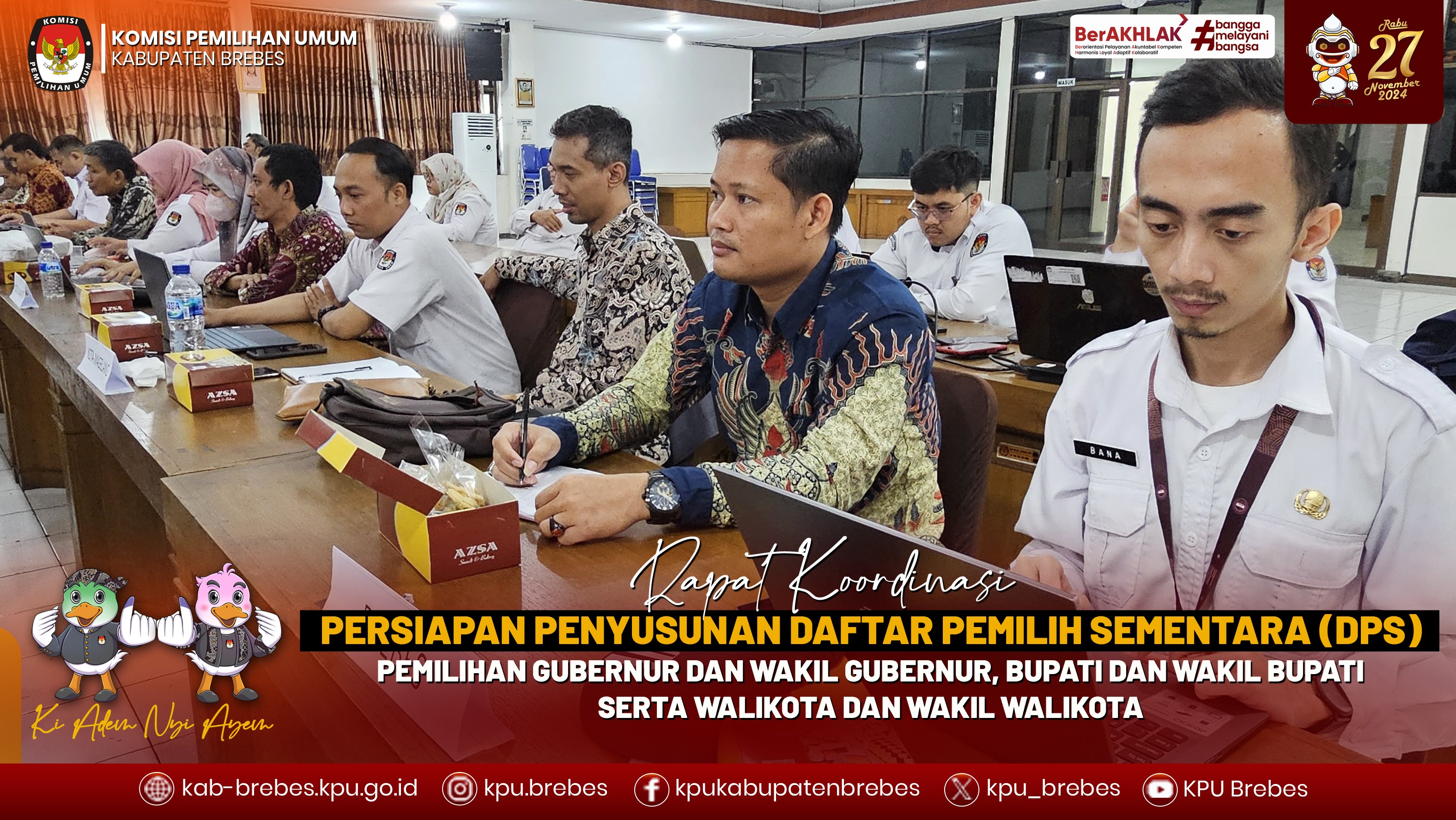 #Temanpemilih KPU Kabupaten Brebes mengikuti Kegiatan Rapat Koordinasi Persiapan Penyusunan Daftar Pemilih Sementara (DPS) Pada Pemilihan Gubernur dan Wakil Gubernur, Bupati dan Wakil Bupati serta Walikota dan Wakil Walikota, bertempat di Kantor KPU Provinsi Jawa Tengah, 29 sd 30 Juli 2024.