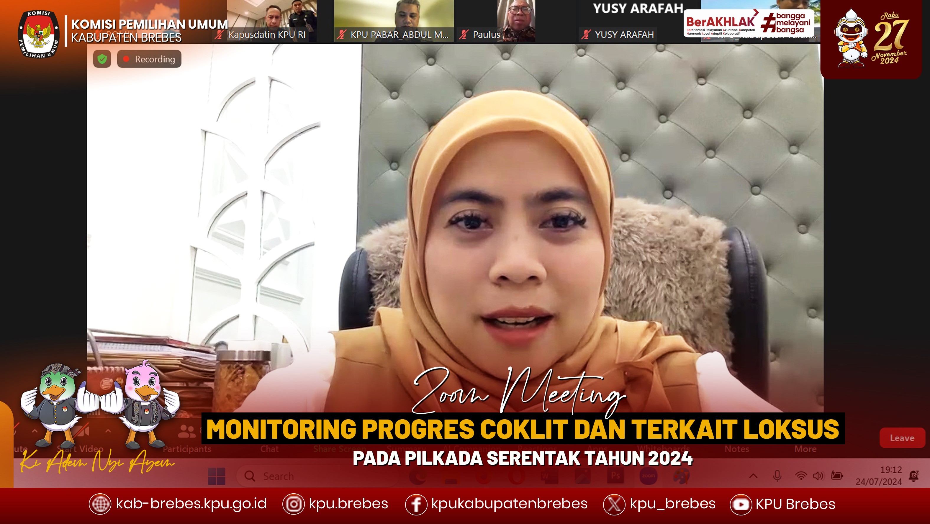 Peserta yang hadir mengikuti kegiatan tersebut yaitu Ketua KPU Kabupaten Brebes Manja Lestari Damanik, Kadiv Sosdiklihparmas Aniq Kanafillah Aziz serta Kasubbag TPPPHM KPU Kabupaten Brebes Imansyah Budiono.