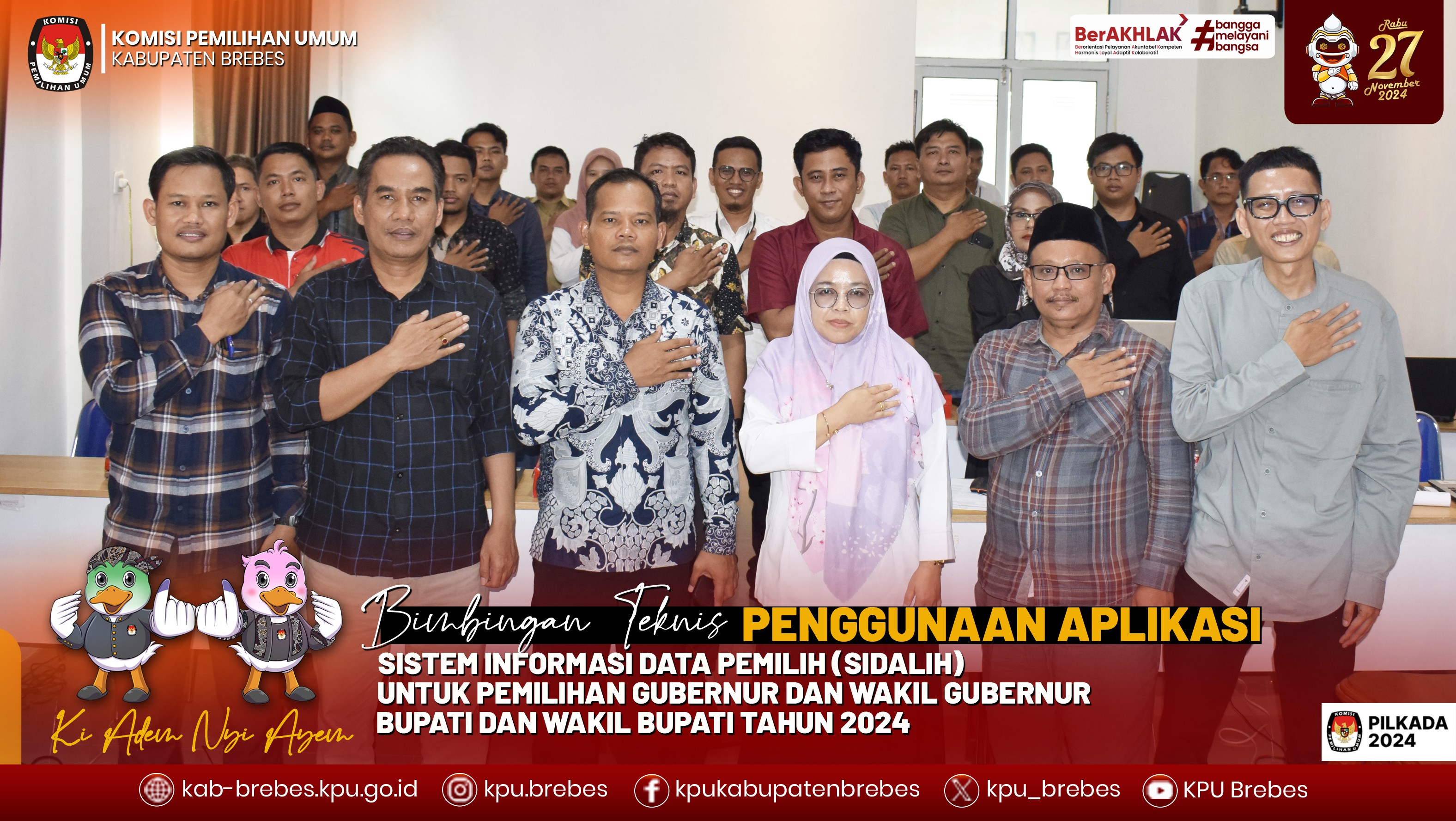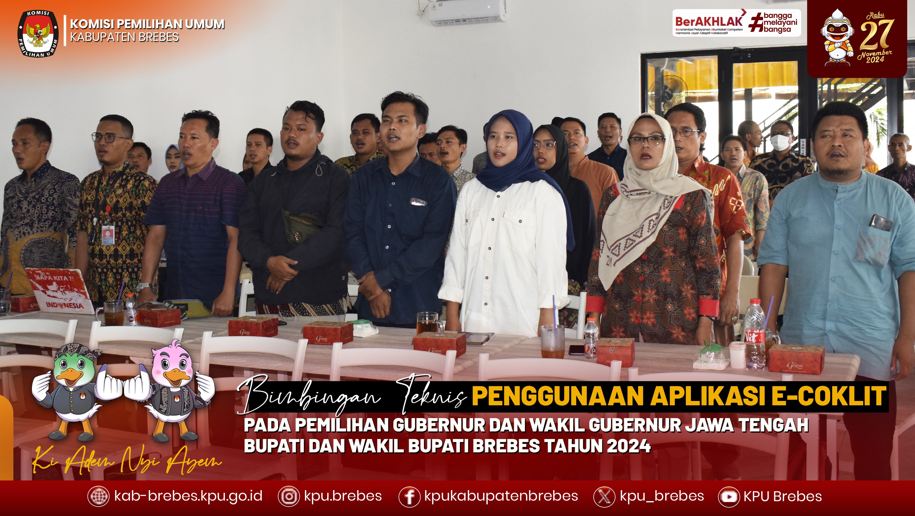 #Temanpemilih KPU Kabupaten Brebes melaksanakan Kegiatan Bimbingan Teknis Penggunaan Aplikasi E-Coklit dalam Penyusunan Daftar Pemilih pada Pemilihan Serentak tahun 2024 di RM. Mbok Gembil Brebes, Kamis (20/6). Dalam Sambutannya Kadiv Teknis Penyelenggaraan Wahadi yang menggantikan Ketua KPU Kabupaten Brebes mengatakan bahwa Pelaksanaan Kegiatan Coklit diharapkan harus dilaksanakan dengan sebenar-benarnya. Dalam Pelaksanaan Bimtek di tingkat kecamatan harus diperhatikan dalam sarana dan prasarana, meliputi tempat yang memadai dan snack atau makanan harus diperhatikan memilah makanan yang tidak cepat basi. Harapan besar kita adalah Pilkada di brebes berjalan dengan baik dan lancar. Muhammad Taufik Z.E selaku Kadiv Perencanaan Data dan Informasi sebagai pemateri berkata dalam teman-teman PPK dan PPS siap melaksanakan tugas tahapan Pemilihan serentak yang sedang berjalan, Aplikasi E-Coklit ini dalam pemilu 2024 sudah pernah dilaksanakan dan di Pemilihan serentak tahun 2024 digunakan kembali untuk mencocokan data pemilih. Dalam Pelaksanaan tugasnya Pantarlih harus kita bimbing dan selalu monitoring, agar berjalan dengan baik sesuai regulasi saat berkeja, karena pantarlih harus terjun langsung ke lapangan atau door to door, Dalam pelaksanaan nya harus ada surat tugas untuk legalitas sebagai petugas pencocokan data pemilih. Pesan yang disampaikan oleh Muhammad Taufik Z.E Diharapkan dalam pelaksanaan Pencocokan pemilih harus sesuai dengan petugas yang terpilih sebagai pantarlih di lokasi atau TPS yang tertera atau tidak menggunakan Joki. Satu kesamaan prinsip Pantarlih dalam penyusunan daftar pemilih Bekerja setiap hari, laporan atau progres kerja dalam jangka waktu sebulan pelaksanaan coklit atau pencocokan data pemilih dilaporkan secara bertahap. Diakhir Kegiatan PPK Data dan Informasi mendapat Bimbingan Teknis Penggunaan Aplikasi E-Coklit yang dipandu oleh Operator KPU Kabupaten Brebes.