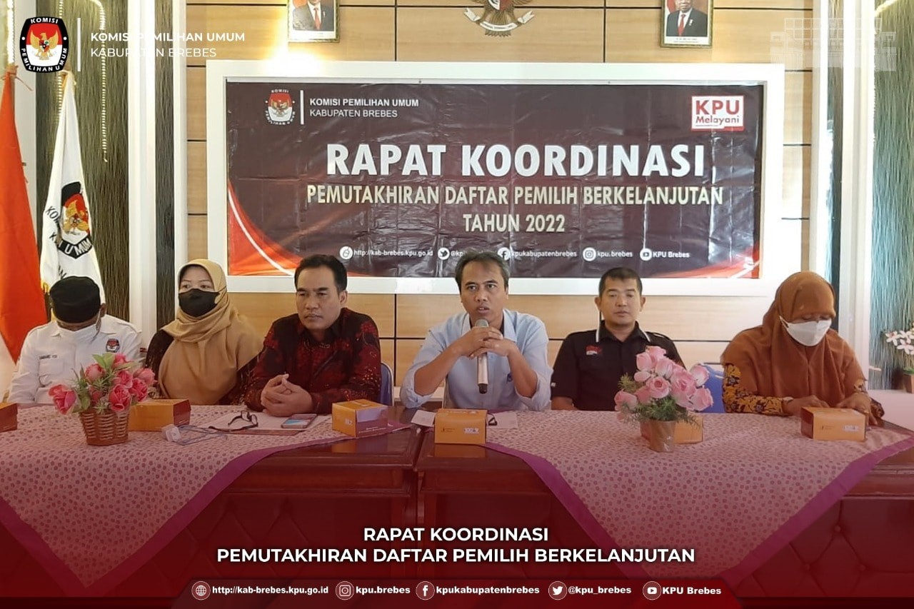 Kamis (23/6), KPU Kab. Brebes lakukan Rapat Koordinasi Pemutakhiran Daftar Pemilih Berkelanjutan (PDPB) Periode bulan Juni Tahun 2022 yang dihadiri oleh Instansi dan pemangku kepentingan terkait, Komisioner, Sekretaris, para kasubbag dan perwakilan staf KPU Kabupaten Brebes.