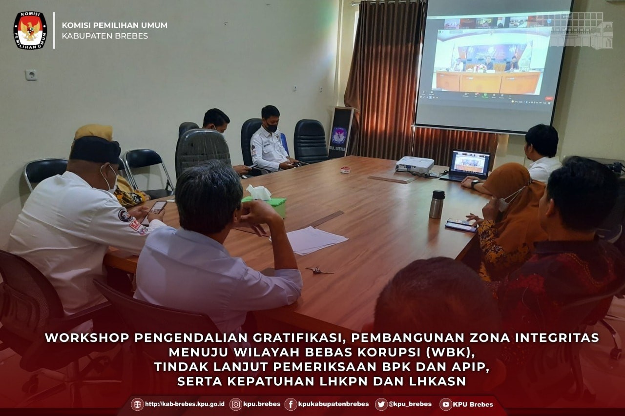 Kamis (23/6), KPU Kab. Brebes mengikuti Workshop Pengendalian Gratifikasi, Pembangunan Zona Integritas Menuju Wilayah Bebas Korupsi (WBK), Tindak Lanjut Pemeriksaan BPK Dan APIP Serta Kepatuhan LHKPN Dan LHASN yang diselenggarakan oleh KPU Provinsi Jawa Tengah secara daring.