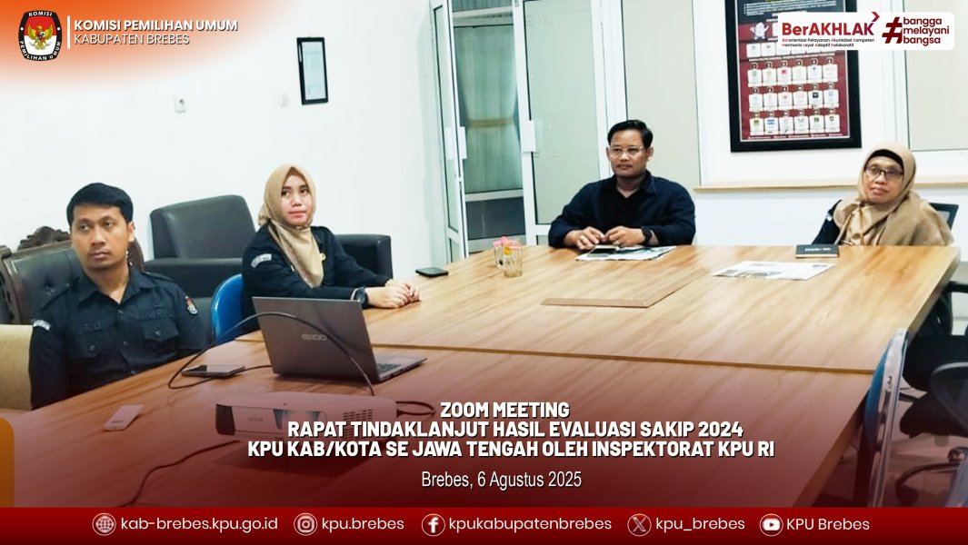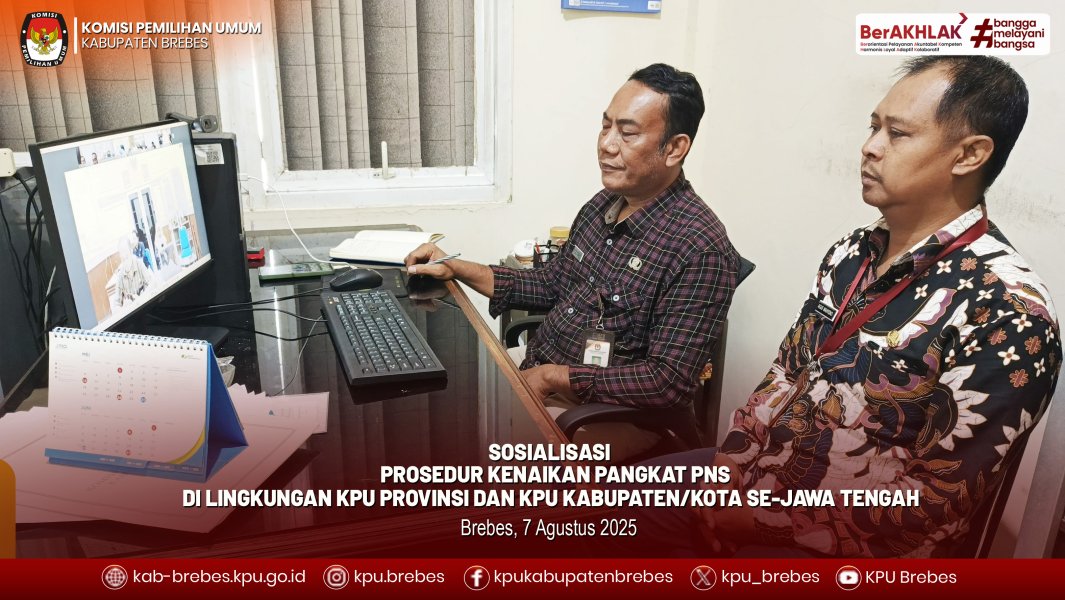 #TemanPemilih, KPU Kabupaten Brebes, Kamis (7/8/2025) mengikuti Rapat Sosialisasi Prosedur Kenaikan Pangkat PNS di Lingkungan KPU Provinsi dan KPU Kabupaten/Kota Se-Jawa Tengah. Kegiatan ini diselenggarakan oleh KPU Provinsi Jawa Tengah melalui zoom meeting. Dibuka oleh Kabag SDM dan Parmas, Kiki Riskaningsih dengan narasumber Kasubag SDM, Widya Listiani. Hadir sebagai pengarah Sekretaris Provinsi Jawa Tengah, Tri Tujiana. Hadir mengikuti kegiatan Kasubag SDM dan Parmas beserta staf SDM dan Parmas KPU Kabupaten Brebes.