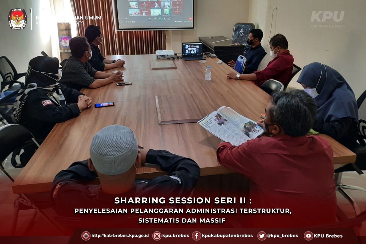 Rabu (18/5), KPU Kab. Brebes mengikuti Rapat Koordinasi Sharring Session Seri II : Penyelesaian Pelanggaran Administrasi Terstruktur, Sistematis dan massif serta Tindak Lanjut Hukumnya pada Pemilihan Wali Kota dan Wakil Wali Kota Bandar Lampung Tahun 2020 yang diselenggarakan oleh KPU Provinsi Jawa Tengah.