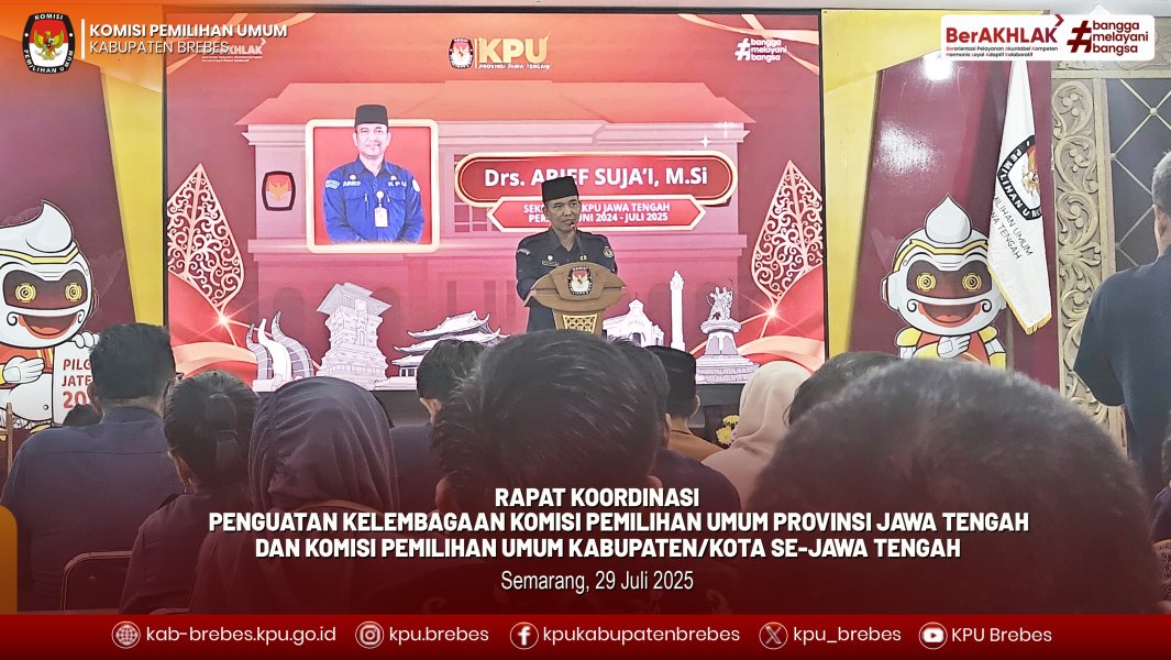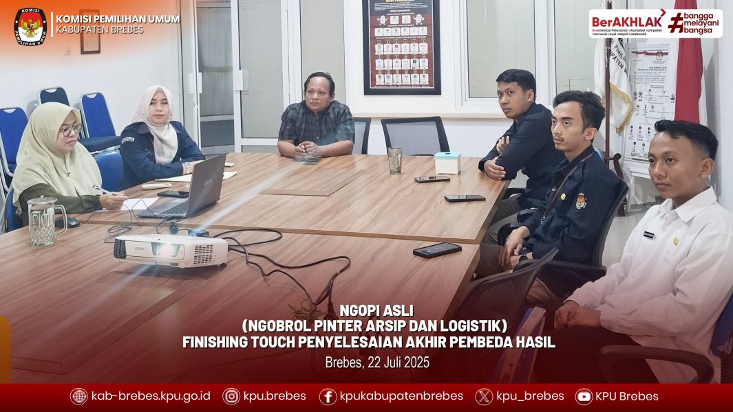 #Temanpemilih KPU Kabupaten Brebes mengikuti Kegiatan Ngopi Asli atau Ngobrol Pinter Arsip dan Logistik Ketua Divisi Perencanaan Data dan Informasi KPU Kabupaten Brebes, Manja Lestari Damanik menjadi narasumber dalam kegiatan “Ngopi Asli“ atau yang diselenggarakan KPU Provinsi Jawa Tengah, secara daring, Selasa 22 Juli 2025. Kegiatan dibuka oleh Ketua Divisi Perencanaan dan Logistik KPU Provinsi Jawa Tengah, Basmar Perianto Amron.