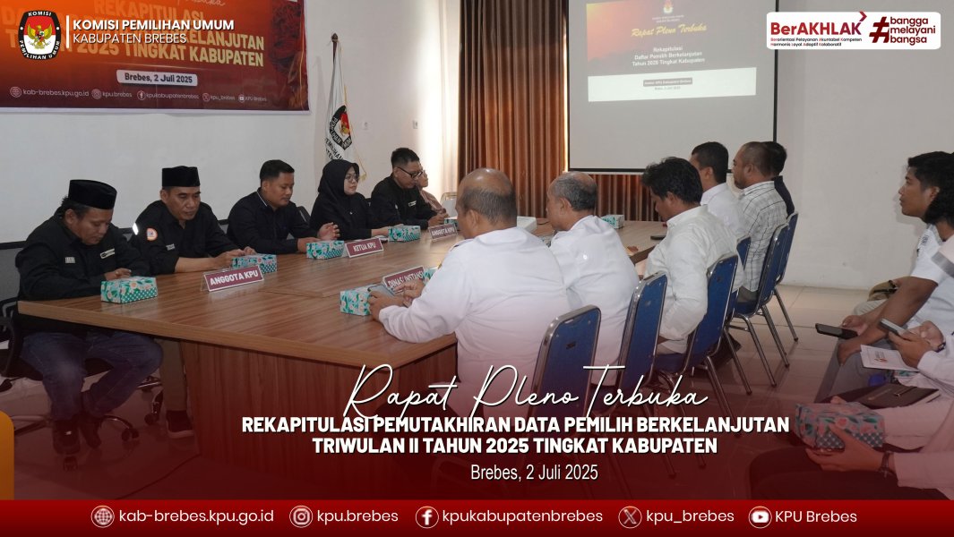 Rapat Pleno dihadiri oleh Ketua dan anggota KPU Kab. Brebes beserta jajaran sekretriat, Bawaslu, Dindukcapil, Kesbangpol, Polres, Kodim, Lapas Kelas II B Brebes. Dalam sambutannya Muhammad Taufik ZE selaku Ketua KPU Kab. Brebes menegaskan bahwa Pemutakhiran Daftar Pemilih Berkelanjutan (PDPB) merupakan kegiatan untuk memperbaharui Data Pemilih berdasarka DPT Pemilu atau Pemilihan terakhir dan telah disinkronisasikan dengan data kependudukan secara nasional termasuk luar negeri. Rapat Pleno terbuka ini merupakan amanat Undang-undang dan amanat Peraturan KPU nomor 1 Tahun 2025 pasal 19 yang harus dilaksanakan .