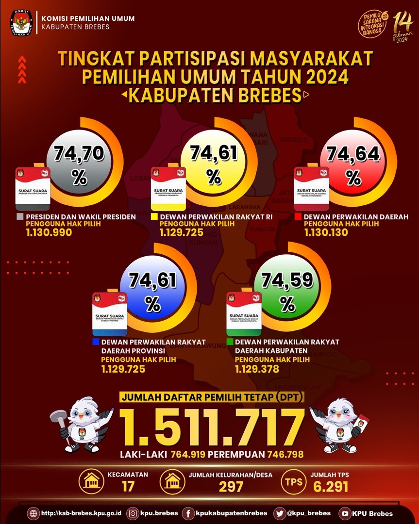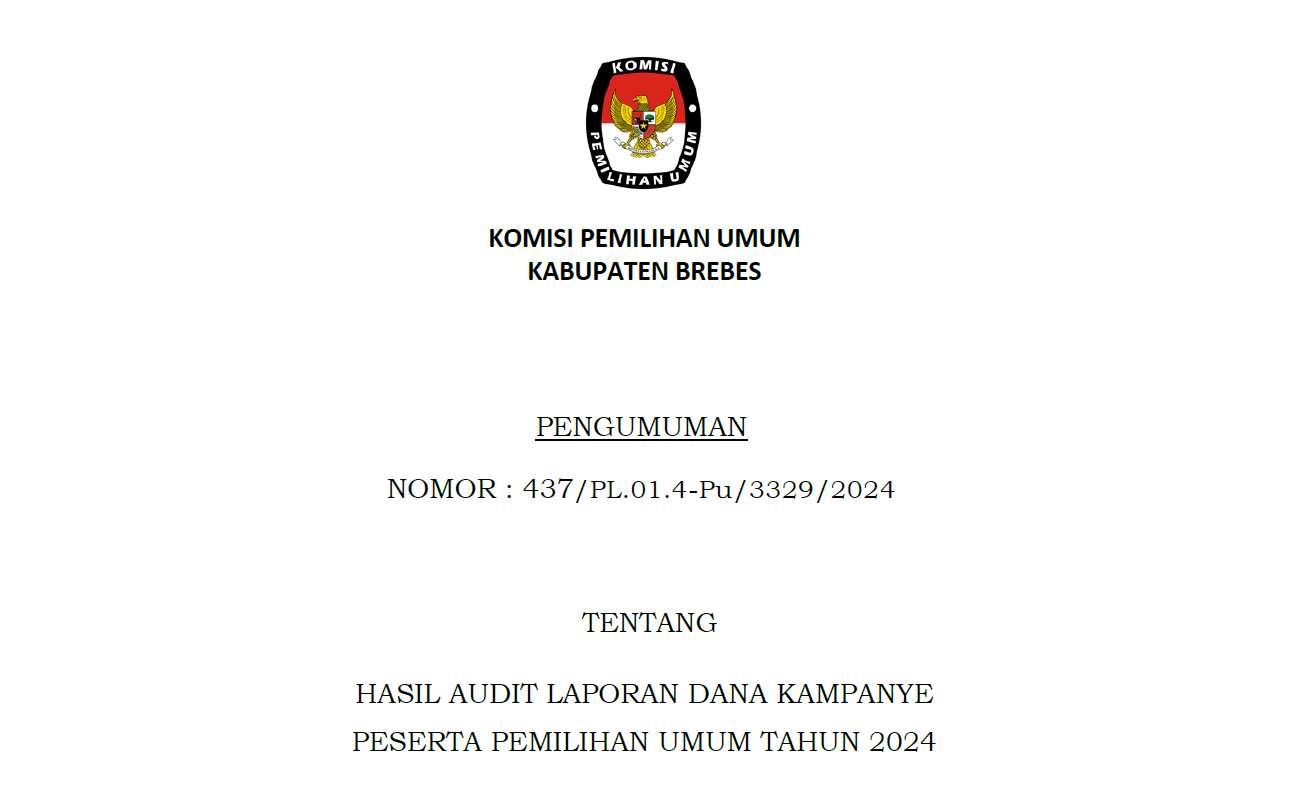 BREBES - Jum'at 23 Pebruari 2024, KPU Kabupaten Brebes telah melaksanakan pemberian santunan kematian kepada keluarga Anggota KPPS, petugas Ketertiban dan Anggota PPS di Kabupaten Brebes, dengan data sebagai berikut :